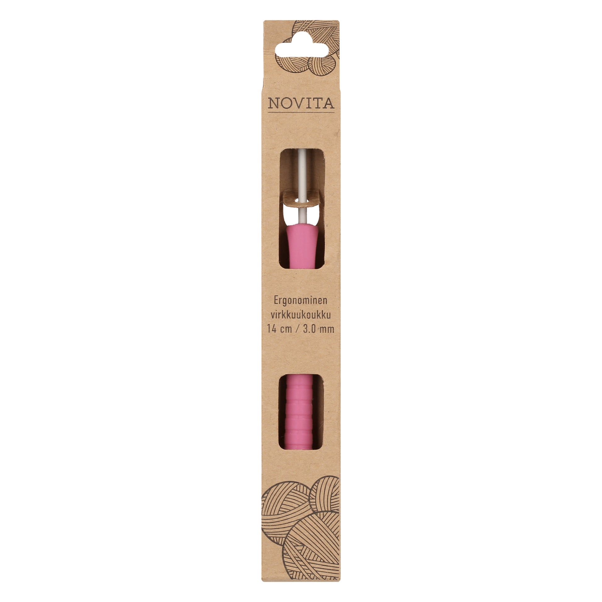 Novita ergonominen virkkuukoukku on suunniteltu siten, että kädensijasta saa hyvän ja pitävän otteen. Ergonomisesti muotoiltu perinteistä virkkuukoukkua paksumpi varsi vähentää puristusta koukusta, jolloin käden ja käsivarren lihakset pysyvät rentoina virkatessa. Ergonominen virkkuukoukku sopii erinomaisesti myös aloitteleville virkkaajille. Varsi on muovia ja koukkuosa alumiinia.